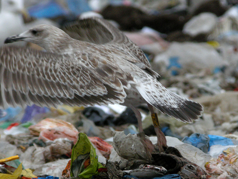 There certainly is some cachinnans in it but many things point to at least f1 or f2 parentage of argentatus especially as the dark markings on uppertail coverts are very coarse as in argentatus. The tail band has a lot of thin additional transversal bands towards the base of rectrices which is a kind of a cachinnans "trademark" but the extensiveness in this individual is together with the heavily patterned uppertail coverts and rump much darker than the average cachinnans so, even if we don't really know it things point to a possible hybrid.